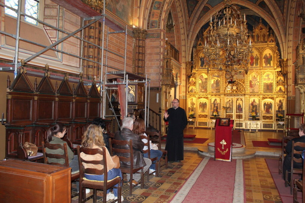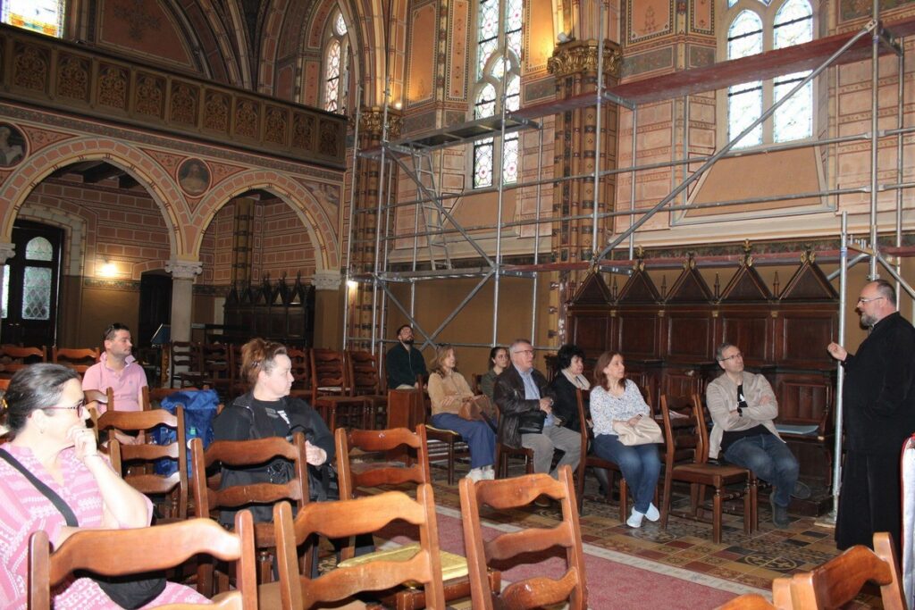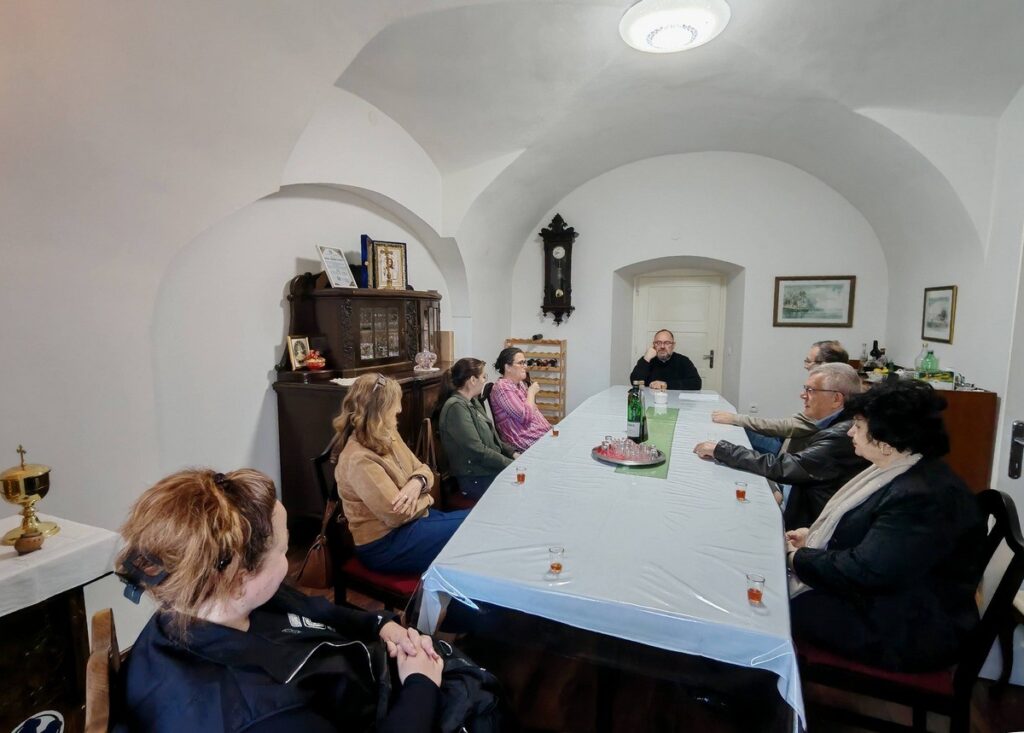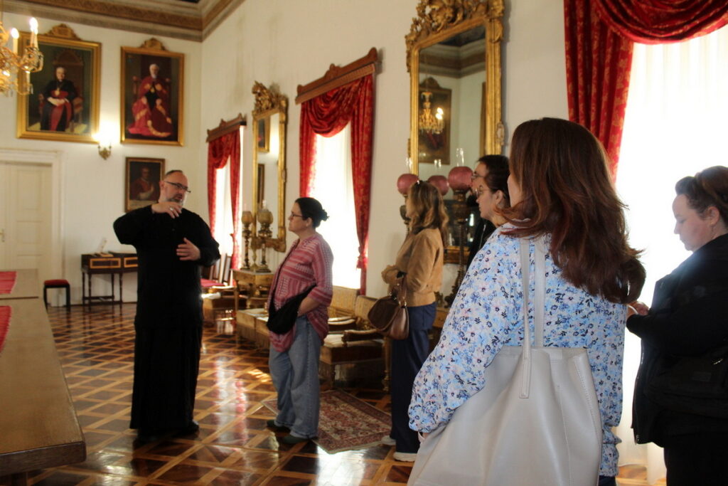 U prvom dijelu programa, sudionici su se susreli s križevačkim vladikom Milanom Stipićem koje je predstavio povijest grkokatolika uopće, te Križevačku eparhiju i grkokatoličku baštinu u Hrvatskoj. Pojasnio je razne događaje koji nisu pokolebali grkokatolike u njihovoj vjernosti Papi, a u isto vrijeme obdržavaju istočne liturgije. Govoreći o sadašnjem trenutku, spomenuo je i sv. Šarbela Makhloufa čije moći križevačka katedrala Svete Trojice čuva već gotovo dvije godine. Na ovaj način, Grkokatolička Crkva u Hrvatskoj doprinosi upoznavanju bogate baštine istočnih Katoličkih Crkava i na našim prostorima. Potom je upriličeno razgledavanje biskupske rezidencije i knjižnice.